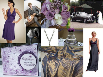 Grey is a hot color in weddings right now. Trends show that it is on the way to replace black and brown and the new color of the moment. I love this grey and purple inspiration board that I created. It is understated and elegant, while still allowing for a bold color.